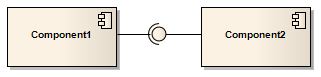 An Assembly connector bridges a component's required interface (Component1) with the provided interface of another component (Component2), typically in a Component diagram.