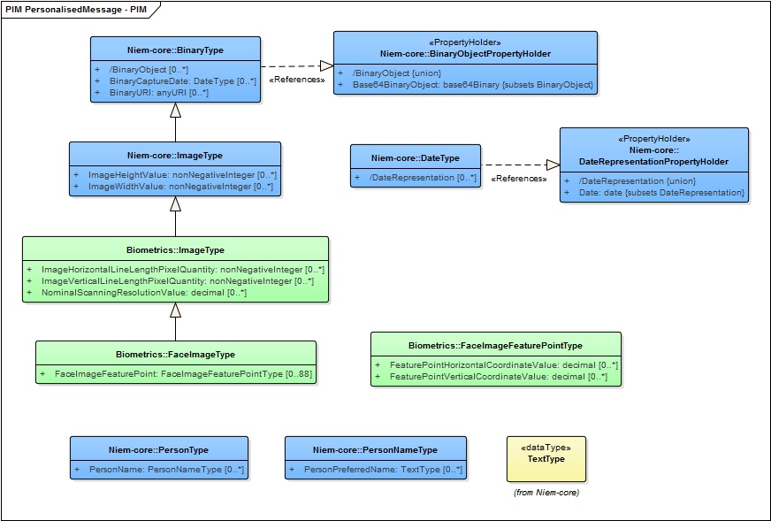 We can now create a NIEM PIM diagram and place all our subset Classes on that diagram, to produce something that resembles this: