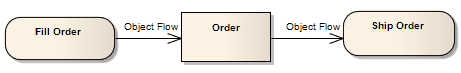 This diagram depicts a simple Object Flow between two actions, Fill Order and Ship Order, both accessing order information.
