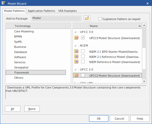 Using the Enterprise Architect Model Wizard you can deploy any of the frameworks supported by the Schema Composer - such as NIEM, CIM and CCTS - to your model in minutes, providing a powerful UML medium for modeling in those technologies.