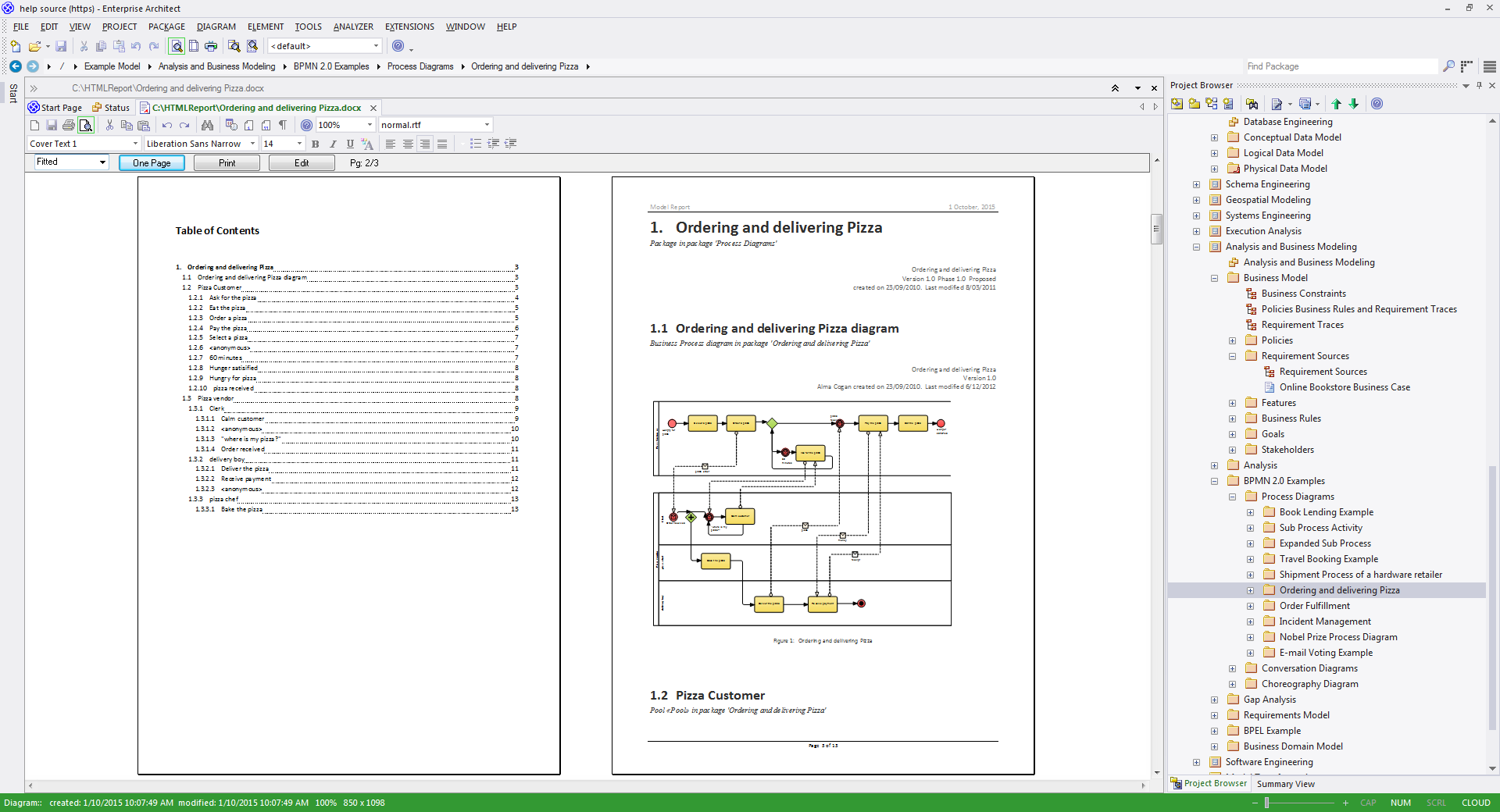 You can generate Document reports in a number of document formats, which you can tailor using templates and Stylesheets to alter the content and appearance of the generated output. Enterprise Architect has a fully-featured document generator that features:
