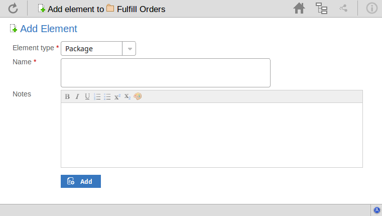 Type in a more detailed description of the element, such as why you are creating it and what other elements it might be associated with. You can format this text using the facilities provided in the Notes toolbar. These are: