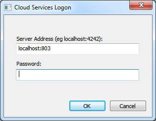 The Cloud Services Logon screen is the first to be shown when launching the Management Client, and at a minimum requires the address and port of the Cloud Server to connect to.