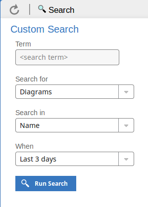 If you select 'Discussions', the 'Search in' and 'Term' options are not relevant and so are grayed out and unavailable. The search is for elements having active discussions within the specified time period. Note: the Discussion option are only available in models that have their show_discuss set to true in the WebEA configuration file, and the Review option is only available when participate_in_reviews is true. |