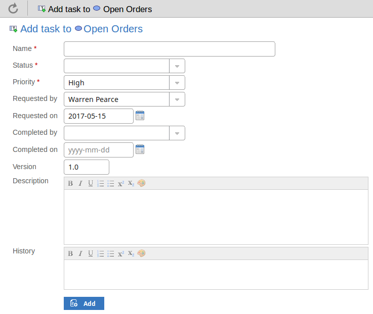 Click on the drop-down arrow and select the name of the person requesting the task. This defaults to the name selected for the previous record. |