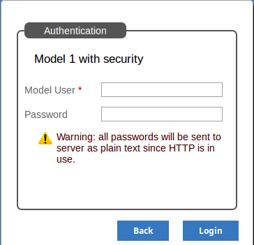 If User Security has been applied to the model, the 'Authentication' page prompts you for your user ID and password.
