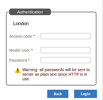 If access to your model requires only an access code, then the 'Authentication' page prompts you for this.