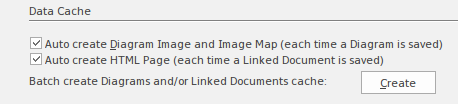 In all editions of Enterprise Architect prior to build 1350, diagrams and linked documents did not exist in a format that was viewable by browsers. In order for users of WebEA to view these components, Enterprise Architect must be configured to generate (and store) viewable versions of them whenever changes are made. The options to generate viewable diagrams and linked documents are defined at the model level. With the model open in Enterprise Architect, select the 'Configure > Model > Options' ribbon option. On the 'Manage Project Options' dialog, refer to the 'Data Cache' options at the foot of the 'General' page.