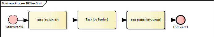 • Ctrl+drag the elements from the Project Browser onto a diagram, pasting GlobalTask1 as an Invocation (Call Activity) named call global (by Junior)