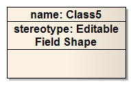 // EDITABLE FIELD SHAPE shape main { rectangle(0, 0, 100, 100); addsubshape("namecompartment", 100, 20); addsubshape("stereotypecompartment", 100, 40);