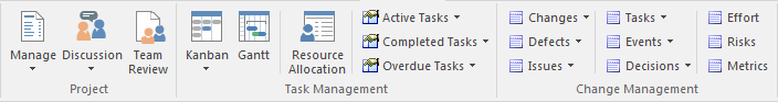The Construct ribbon presents the tools and facilities for visualizing and managing the tasks and the resources needed to construct a system, from the allocation of human resources to tasks, to the powerful Kanban boards and Gantt chart for visualizing the progress of work done. Teams can collaborate directly in the tool and manage a wide range of variations to model elements - including Issues and Defects - and tests can be defined and results recorded.