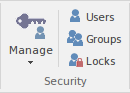 This command displays the 'Security Groups' dialog, where new User Groups can be created and users can be added to those groups. Permissions can be granted to User Groups using this dialog. |