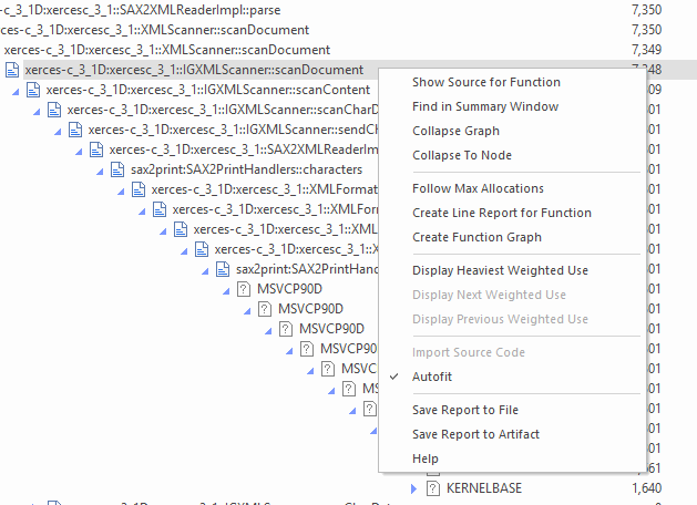 Unfiltered Summary Report listing all participating functions in order of inclusive hits.