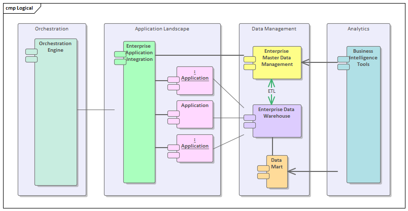 The Application Architecture provides an important catalog of the applications in the enterprise describing the work that they do to transform, transmit and store information. The architecture also describes the interfaces that are required or provided by the applications and the way the applications interact to carry out the activities described in the business models such as the Business Process diagrams. The catalog of applications, interfaces and the diagrams and matrices that describe their interaction only need to be defined once at the enterprise level. An application architect will be able to draw upon this inventory of existing artifacts to create new architectures, classifying them as part of the baseline and potentially the future state architecture. Where an architecture introduces new applications, these can be added to the description of the target state.