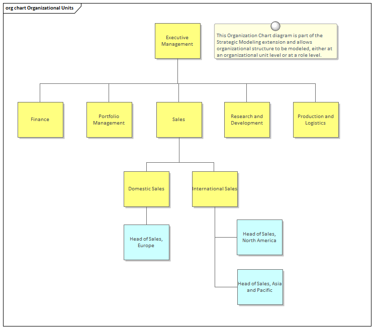 Enterprise Architect has an Organizational Chart within the Strategic Modeling Technology, which can be used to model the structure of an enterprise and its organizations. The architectures can be related to this structure, which allows the organizational scope to be visualized.