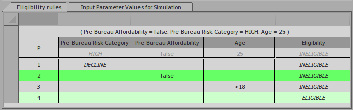 Note: The output order is defined as INELIGIBLE, ELIGIBLE; which means INELIGIBLE has higher priority than ELIGIBLE.