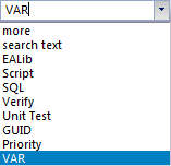 The 'Search Text' field. Type the text string to search for. Any text you type in is automatically saved in the drop-down list, up to a maximum of ten strings; text added after that overwrites the oldest text string in the list. You can click on the drop-down arrow and select one of these saved text strings, if you prefer. |