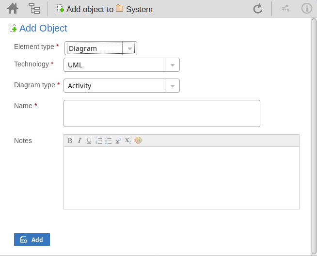 Type in a more detailed description of the element, such as why you are creating it and what other elements it might be associated with. You can format this text using the facilities provided in the Notes toolbar. These are: