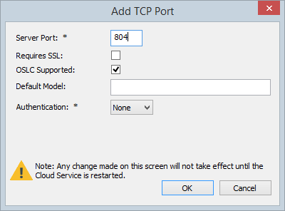 As mentioned in the Port Configuration topic, when setting up the Cloud Server you will need to define at least one Port for communication between the Cloud Service and Enterprise Architect.