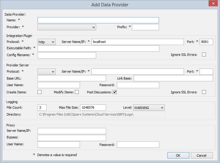 This group of settings relate to how the Integration Plugin should communications to the External Data Provider when they are separated by a Proxy Server.