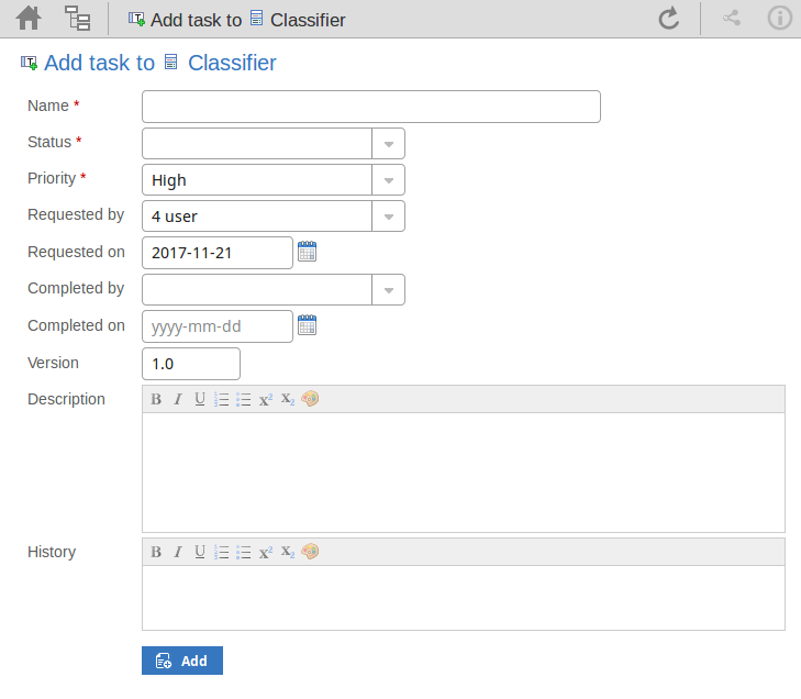 Type in a version number or letter to indicate any evolution of the same task. Defaults to '1.0', indicating the first instance of a task. |