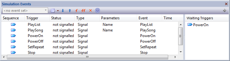 As triggers are consumed in the simulation, their status and position is logged in the main body of the Simulation Events window.
