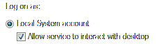 Select the 'Allow service to interact with desktop' checkbox.