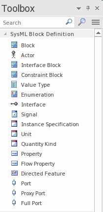 Systems Engineers who are experienced in using Enterprise Architect will generally select a Perspective from the Systems Engineering Perspective Set; typically this will be the SysML Perspective, giving them access to patterns and toolboxes tailored for creating SysML diagrams such as Block Definition and Internal Block diagrams.