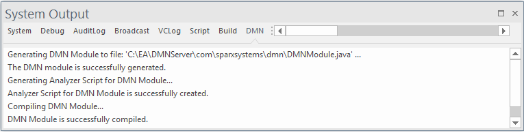 - For Java language, the Module Path must match the Package structure. In this example, the DMNModule.java must be generate to a directory to form a file path ends with: "\com\sparxsystems\dmn\DMNModule.java", you have to manually create the directory structures for now.