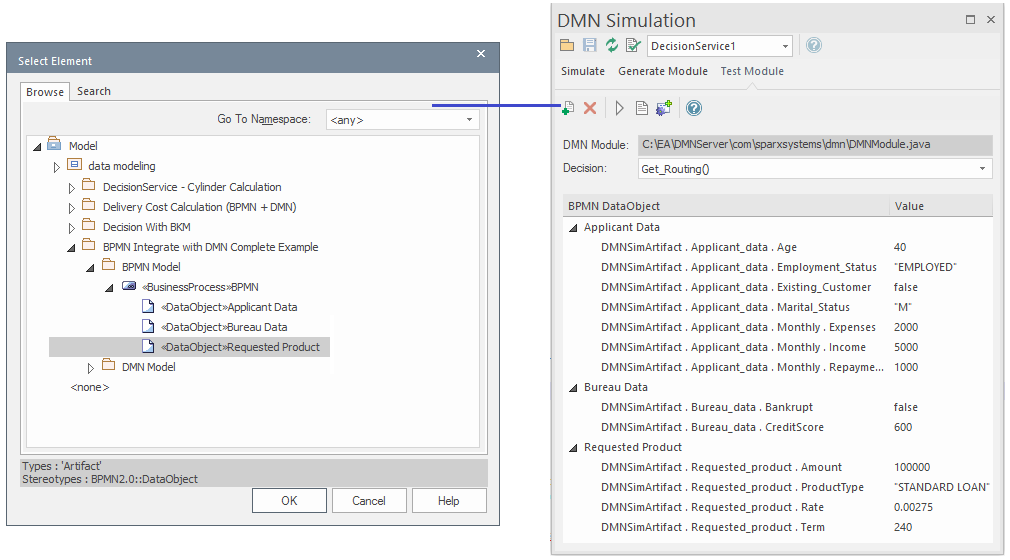 Note: The DMN Module path is saved in the DMNSimConfiguration Artifact's Filepath property.