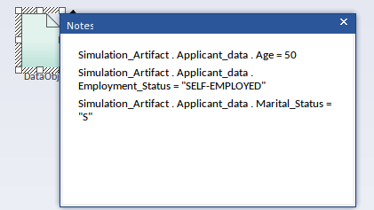 This same BPMN DataObject is used when testing the code generated from a DMN model.