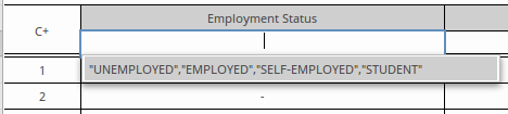 Once the Allowed Values field is defined, as well as restricting the values that can be used when defining the rules in the table, the Allowed Value field also provides the user with a fast fill option. This is invoked, in a rule cell, by pressing the spacebar and selecting the required item: