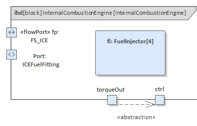 Where the Parts and properties of a parent Block have already been defined you can display these on the Internal Block diagram with a simple context-menu option on the new IBD diagram.