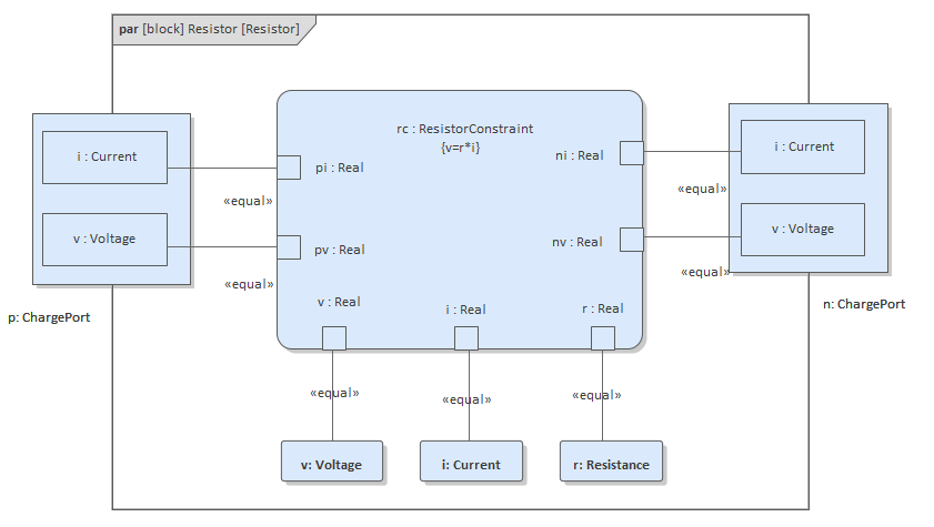 The Block that owns the Parametric diagram is automatically represented by a diagram frame enclosing the Parametric diagram elements. You can: