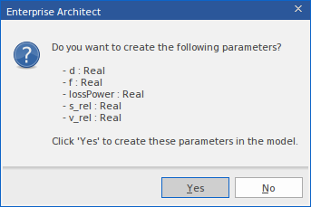 You can model one or more calculated constraints as a SysML Constraint Block element using the 'Edit Constraint Block' dialog, through which you parse the constraints and extract the parameters from each of constraints. You can apply any equations that are appropriate to your model, whether they be international standard formulae or those you have derived yourself within the domain of your work.