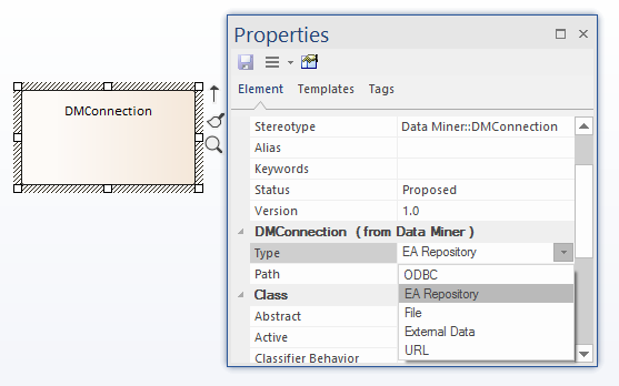 To set the Data Source Type, in the Properties window, under DMConnection, select the Type from the drop-down: