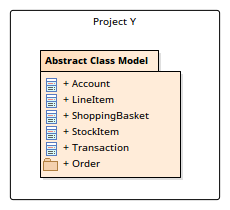 Packages 'Abstract Class Model' and 'Order' exist in two separate projects, 'Project X' and 'Project Y'. In 'Project X', 'Order' exists as a child of Package 'Abstract Class Model', whereas in 'Project Y' they are both peer Packages.