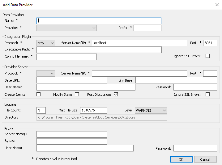 This group of settings relate to how the Integration Plugin should communications to the External Data Provider when they are separated by a Proxy Server.