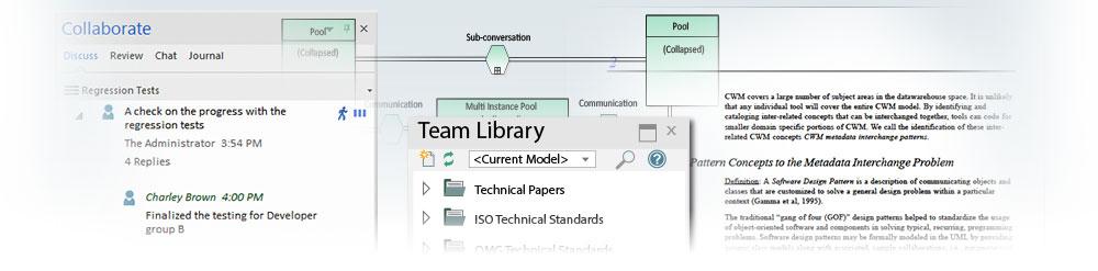 In addition, there are features that allow modelers to discuss the model, such as the Collaborate window, and review work that has been in progress in the Team Library window. Modelers can even send Model Mail to communicate ideas. Model Security can be implemented, which facilitates collaboration and prevents work accidentally being overridden.