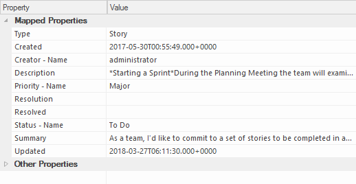 Properties that will be used when creating a linked local element are show in the top group 'Mapped Properties' while all other properties are grouped in 'Other Properties'. The property mapping can be configured in Configuration.