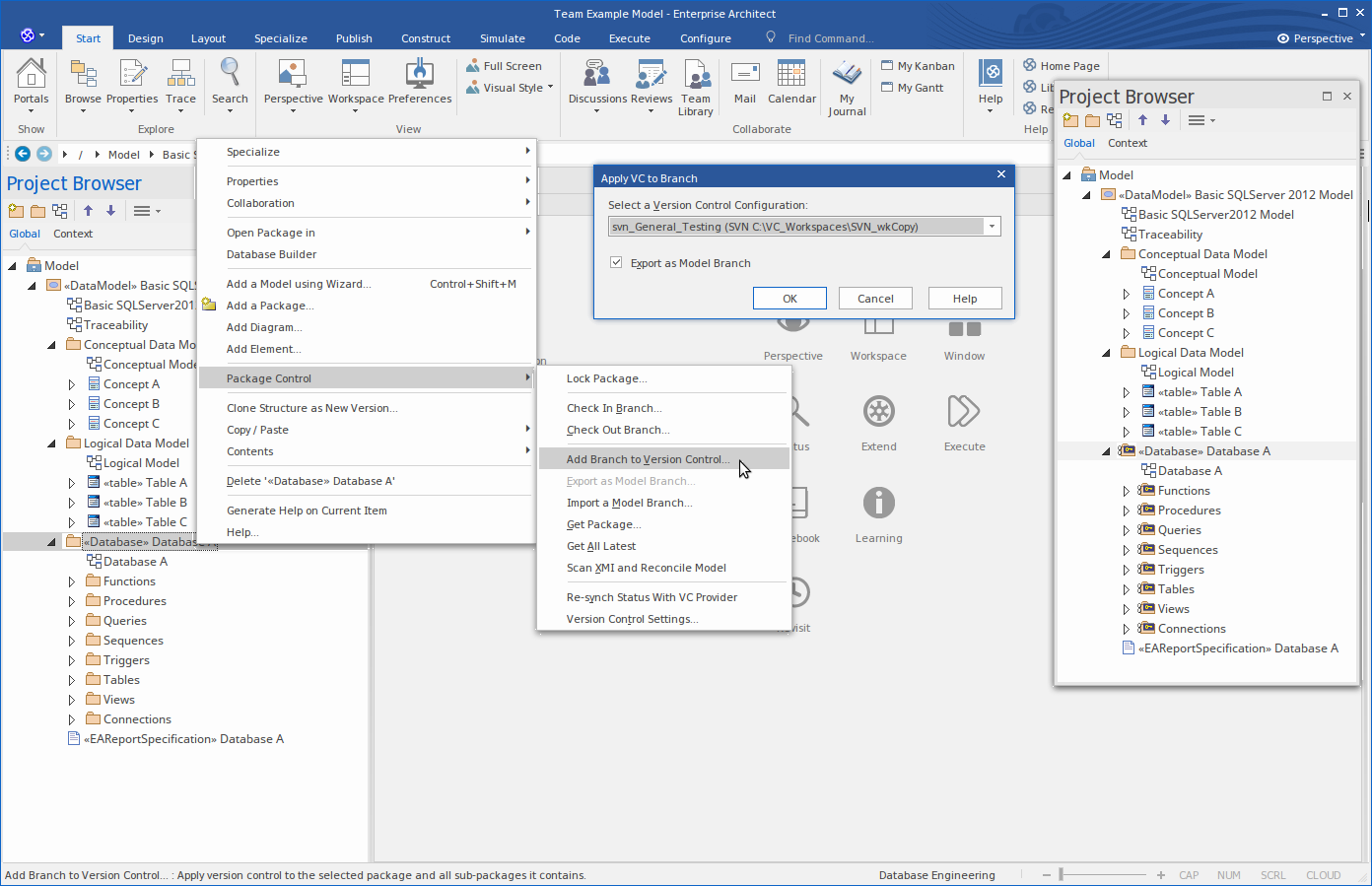 This collection of images illustrates the use of the Version Control tools available to you in Enterprise Architect. |