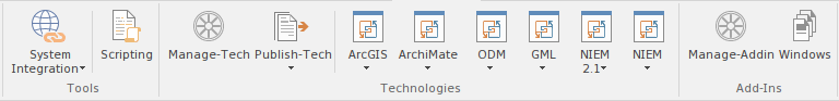 The contents of this ribbon therefore depend on what Add-Ins and Technologies you have installed and enabled, and whether they have been assigned to a particular functional area of Enterprise Architect.