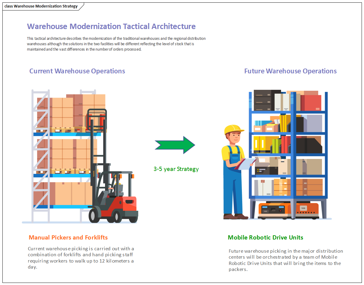 Enterprise Architect has a number of facilities that help ensure that the architecture's alignment to the strategic plans can be visualized in a format that is appropriate for the relevant executive and line of business stakeholders. The business plan will typically reside in a corporate repository, but a hyperlink can be created from an Artifact within Enterprise Architect that will launch the Strategic Plan or other documentation. The Artifact acts as a surrogate for the external plan and then elements for Mission and Vision statements, Goals, Objectives, Drivers, Competitive Analysis and more can be created in the repository.