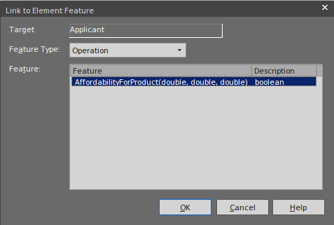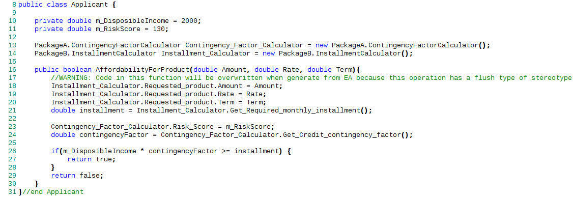 Suppose we have a Class Applicant with an operation AffordabilityForProduct that evaluates whether the applicant can afford a loan product.