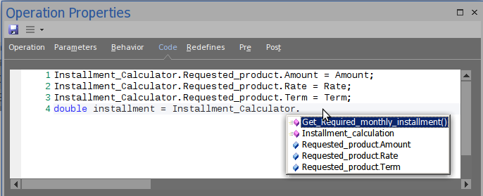 This illustration shows that we are selecting Get_Required_monthly_installment() from the Installment_Calculator.