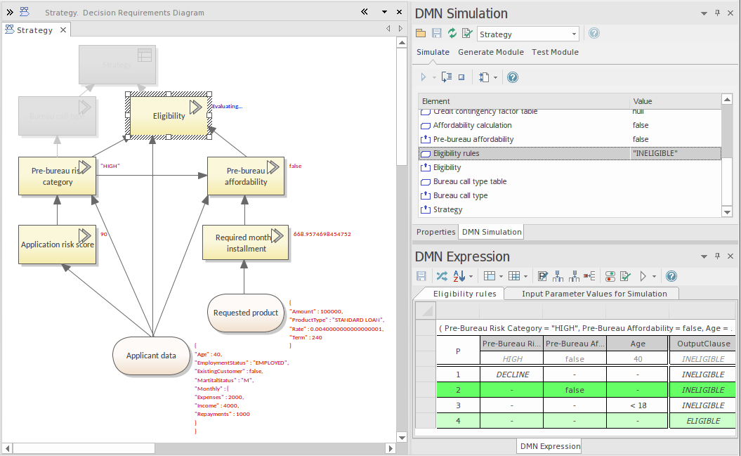 - Double-click to open the DMN Simulation window.