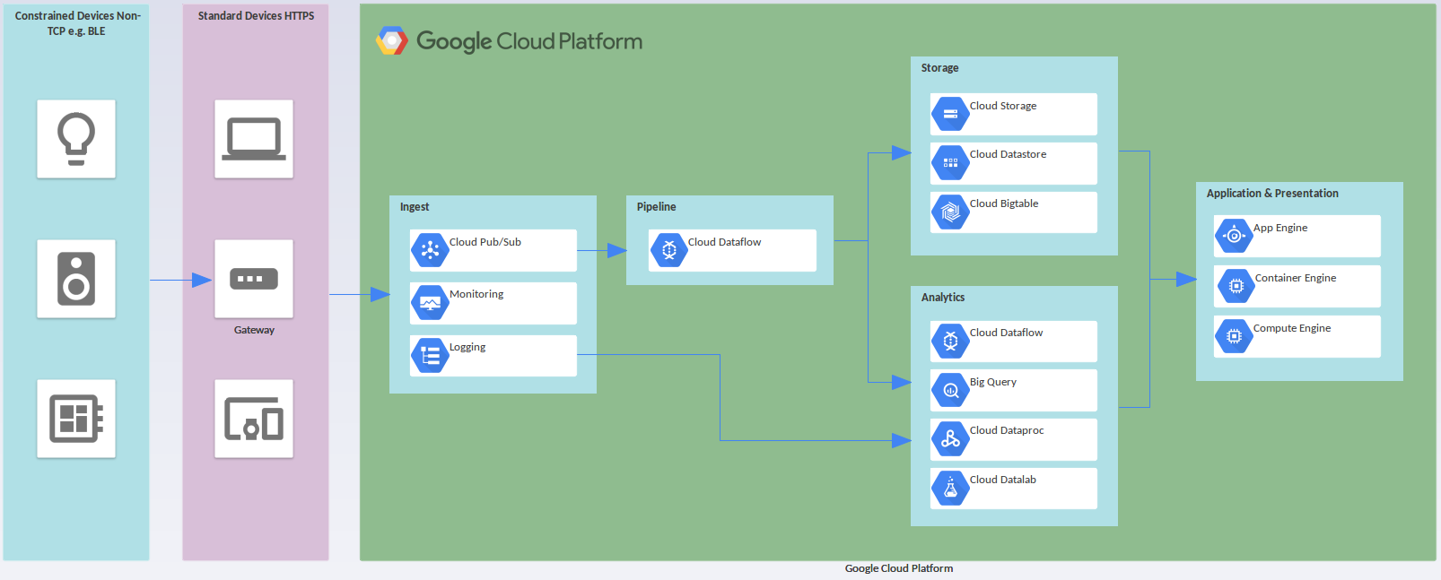 In the Model Wizard there are example patterns that show typical use of the images in diagrams, reproduced from the 'Google Cloud Platform' Powerpoint. This example is the Sensor Stream Ingest and Processing diagram.