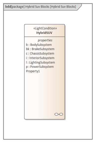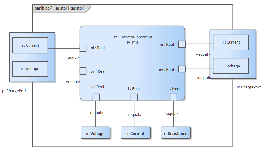 The Block that owns the Parametric diagram is automatically represented by a diagram frame enclosing the Parametric diagram elements. You can: