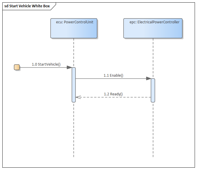 A SysML Sequence diagram, as for a UML Sequence diagram, is used to display the interaction between users, screens, objects and entities within the system. It provides a sequential map of messages passing between objects over time. Frequently, these diagrams are placed under Use Cases in the model to illustrate the Use Case scenario - how a user will interact with the system and what happens internally to get the work done.
