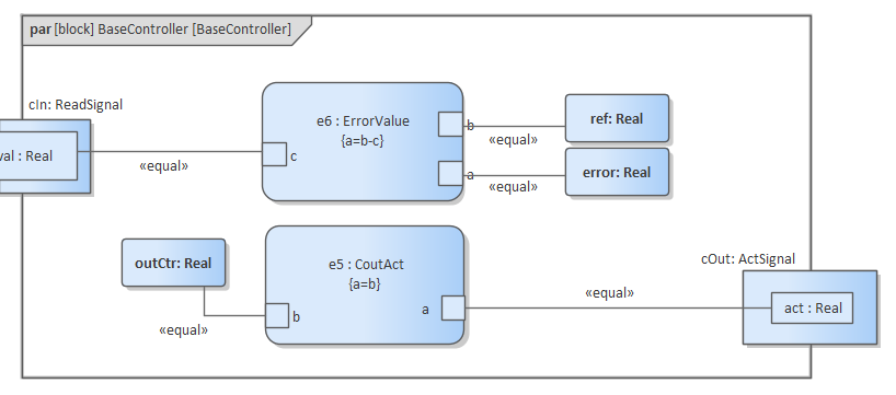 For further information, see the Parametric Diagrams, Parametric Diagram Modeling Assistant and Parametric Simulation Using OpenModelica Help topics. |
